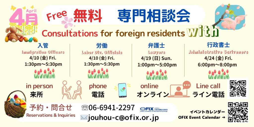 4月にOFIXで実施する外国人のための専門家による無料相談会のお知らせ